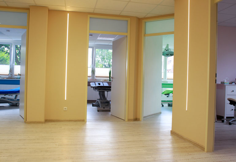 Die modern ausgestatteten Räumlichkeiten in der Wehrberger Straße 18 in Hameln bieten Platz für acht Behandlungsräume, einen großen Gruppenraum sowie einer großzügigen Gerätefläche mit hochwertigsten Trainingsgeräten.